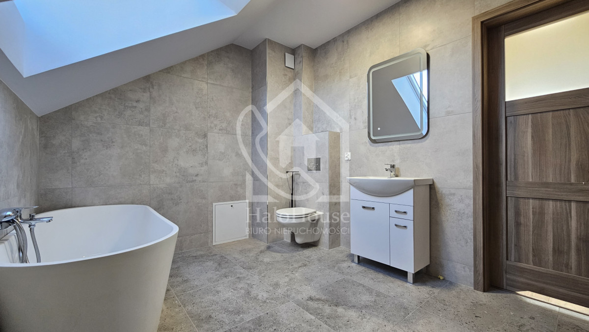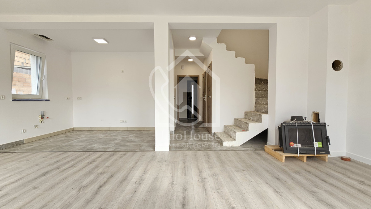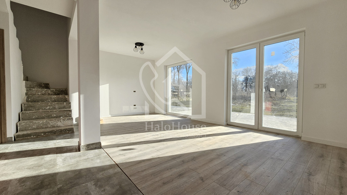 Dom w stanie wykończonym. Dla przyszłego właściciela pozostaje wykończenie detali w środku takich jak schody czy umeblowanie. Dom wybudowany z pustaka Porotherm, z dachem na konstrukcji drewnianej krytym dachówką, oknami trzyszybowymi oraz ociepleniem 15 cm.